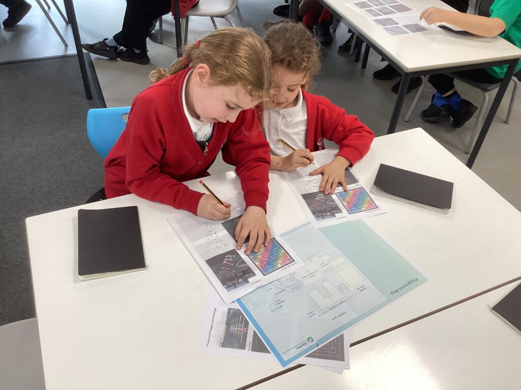 We were joined once again by Mrs Thomson and Mrs Carroll. They provided us with an update about the playground and the equipment they have already purchased. We discuss different types of markings that could be used on the playground as well as looking at maps to decide where they might go. Mrs Thomson tasked us with taking the sheet back to our class to vote on the markings that are class preferred.